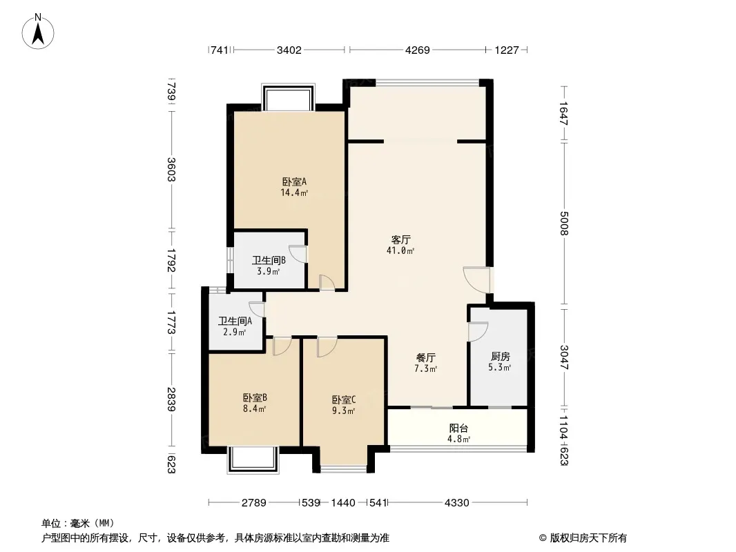 户型齐全,主打户型方正,明厨,客厅朝南,明卫三居