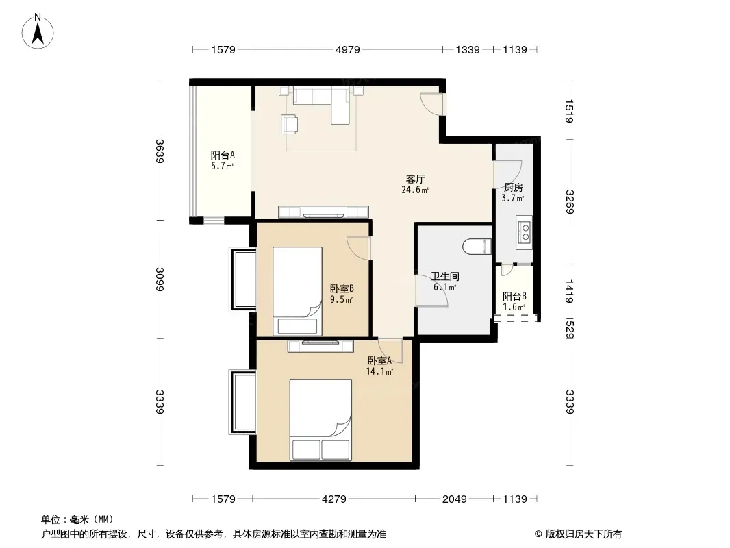 户型齐全,主打户型方正,明厨,明卫,客厅朝南,全明格局,双卧朝南二居