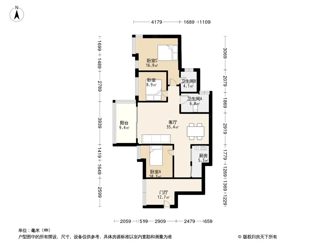 户型齐全,主打户型方正,明卫三居