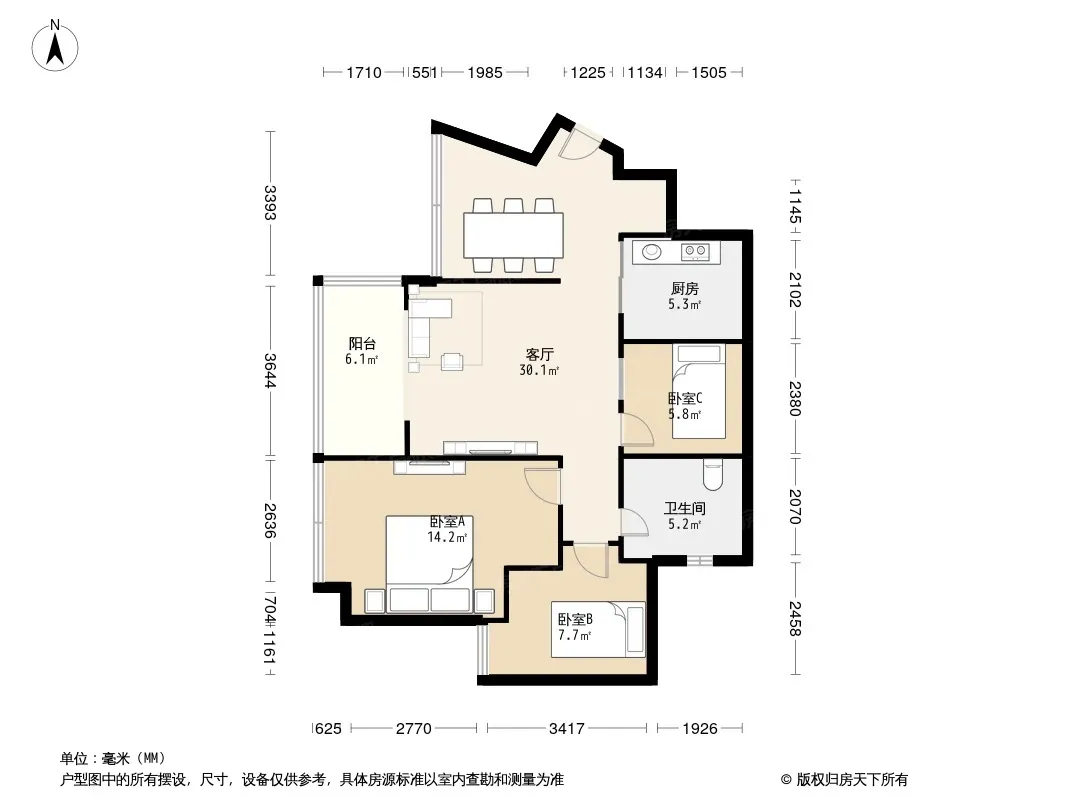 户型齐全,主打户型方正,明卫三居