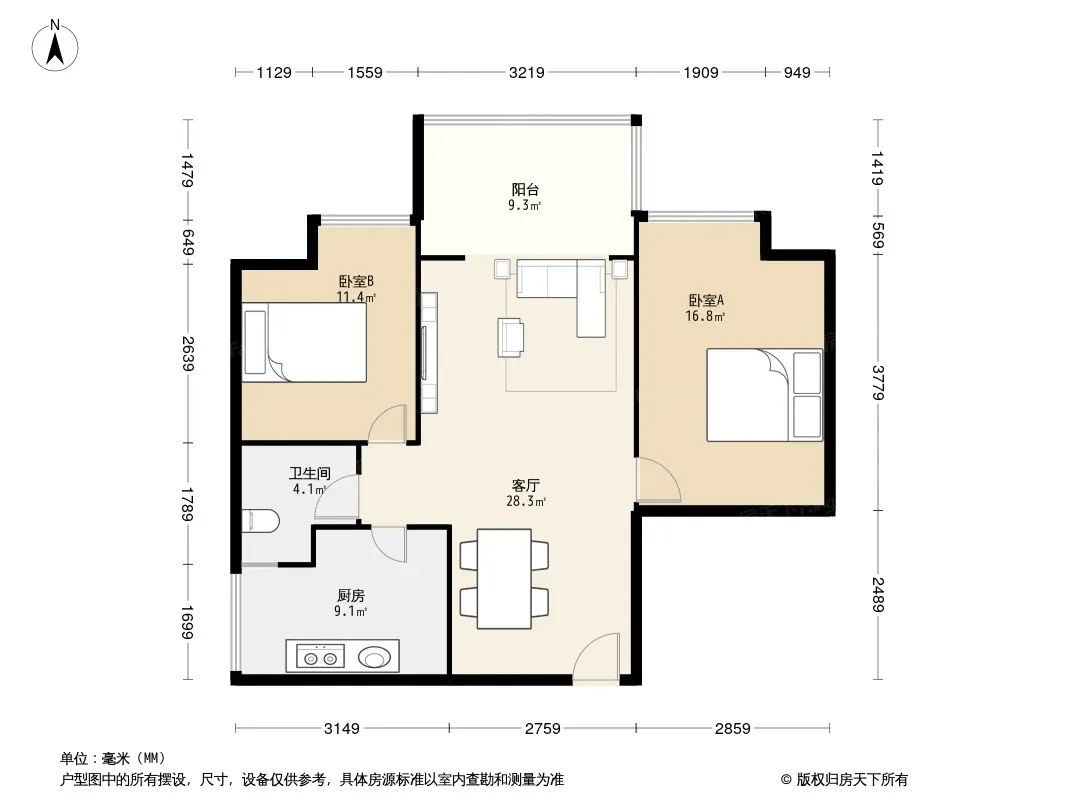 户型齐全,主打户型方正,客厅朝南,双阳台二居