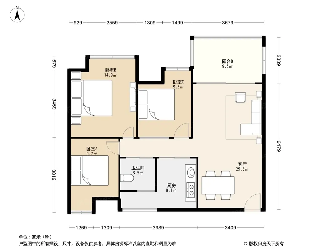 华宇阳光水岸 3室1厅 东北