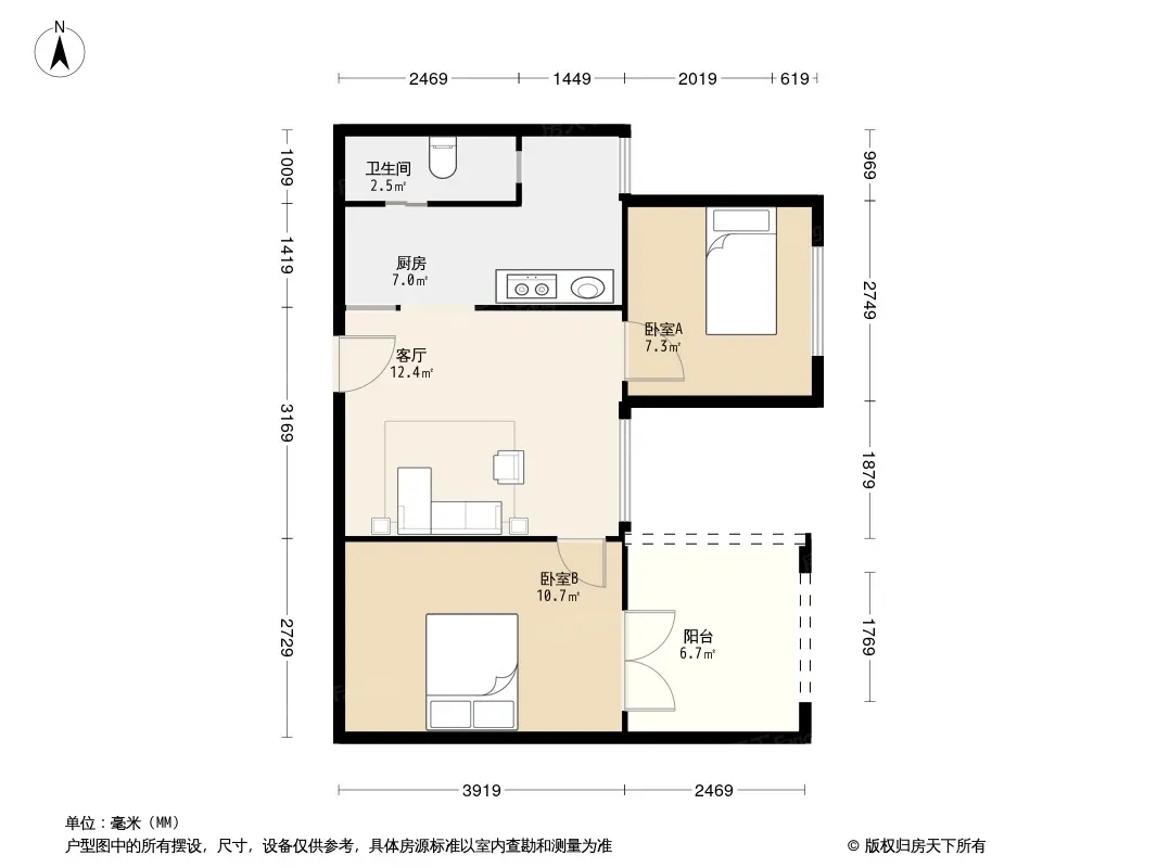户型齐全,主打户型方正,客厅朝南,双阳台二居