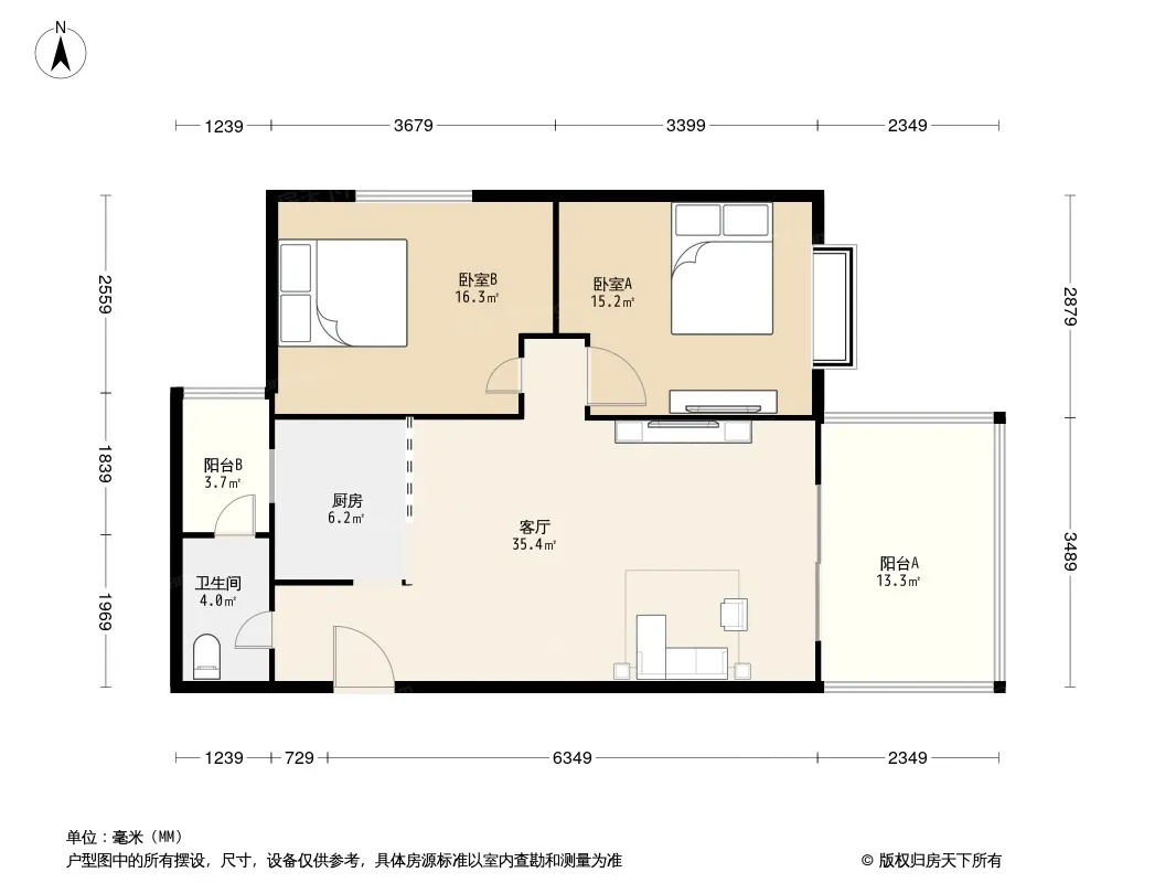 户型齐全,主打户型方正,客厅朝南,双阳台二居