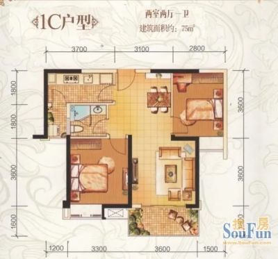 彩世界 2室1厅 南
