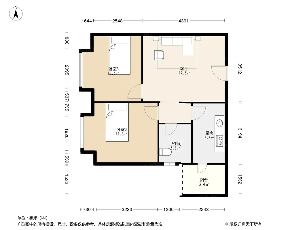 户型齐全,主打主卧朝南,户型方正,明卫,客厅朝南三居