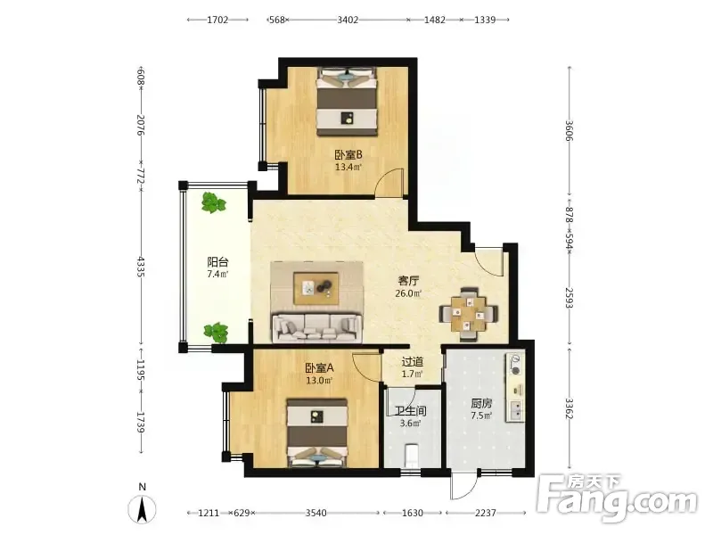 锦上南庭 2室1厅 东南