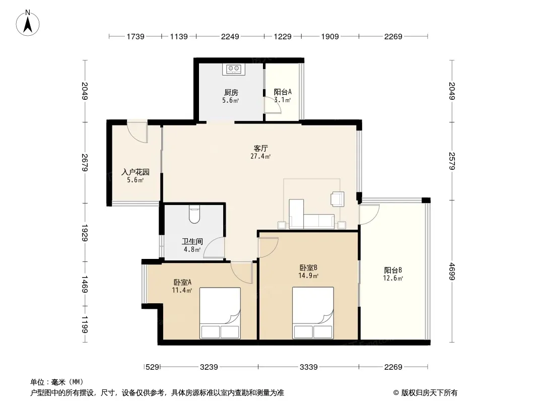 户型齐全,主打户型方正,明卫,客厅朝南,双阳台二居