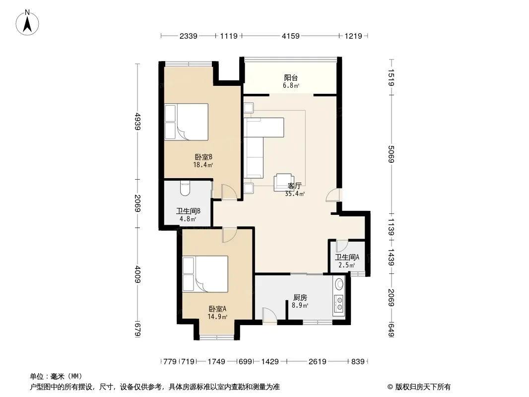 户型齐全,主打户型方正,明卫,客厅朝南,双阳台三居