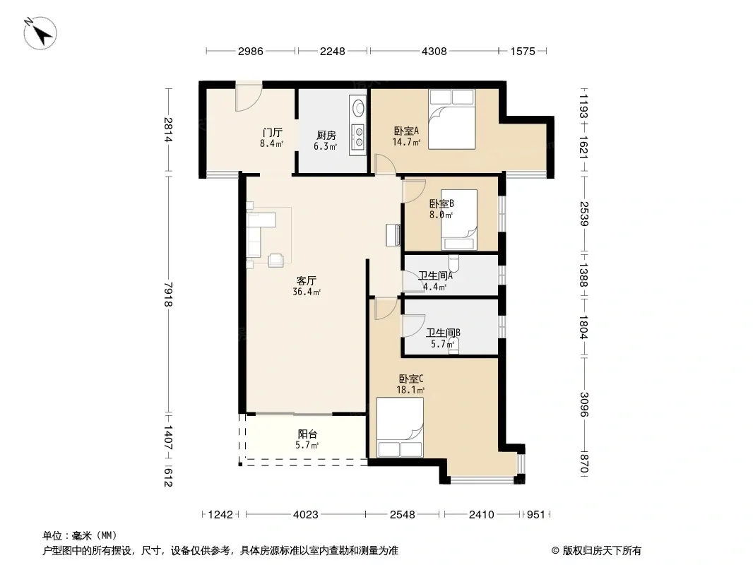 *获取完整户型报告,同时会有免费语音讲解服务