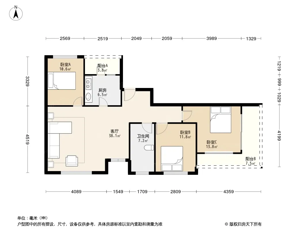 *获取完整户型报告,同时会有免费语音讲解服务
