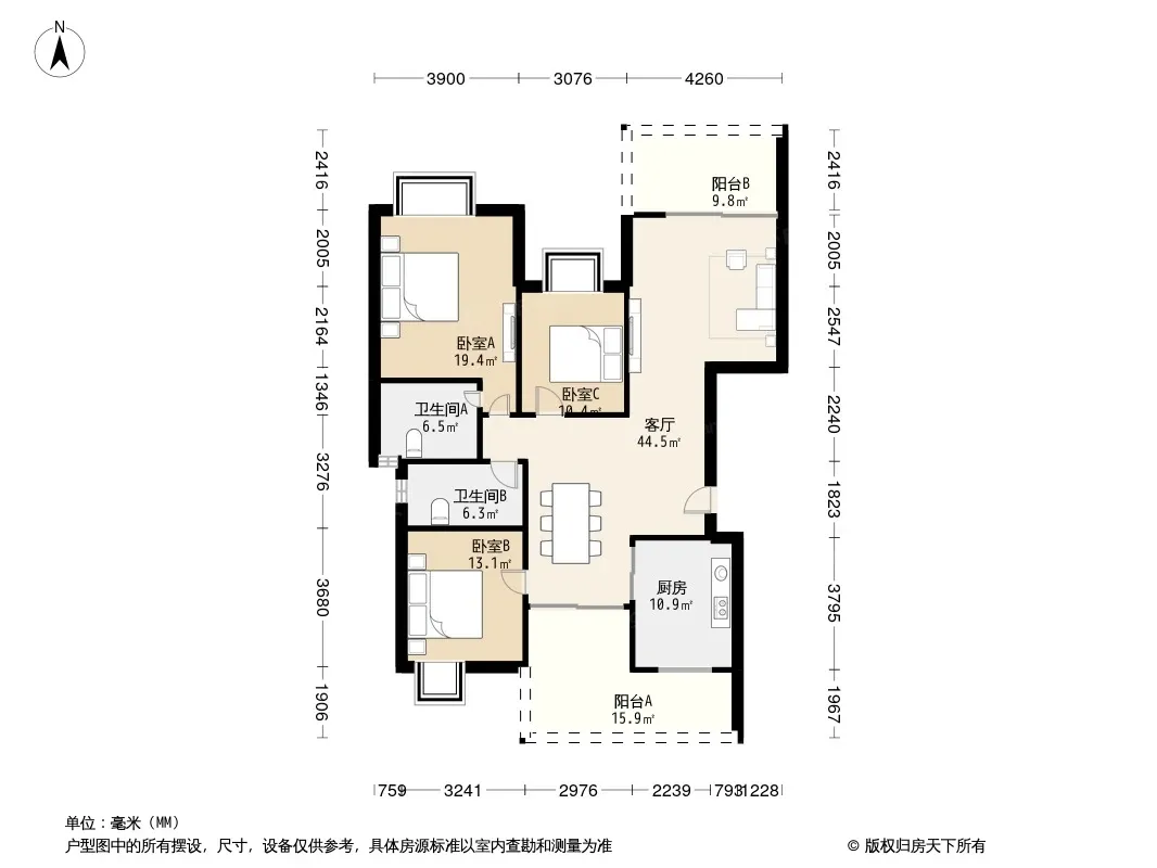 户型齐全,主打明卫三居