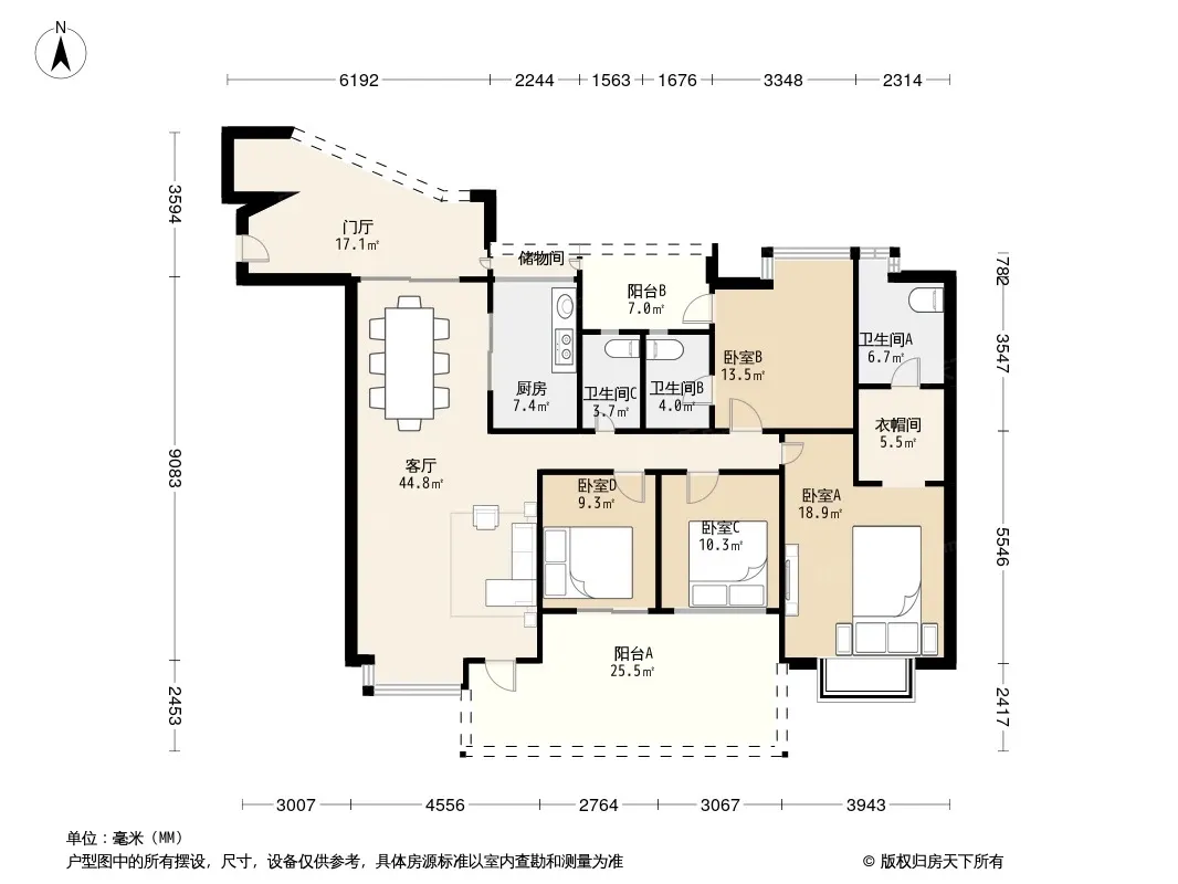 保利公园198玫瑰郡 4室1厅 东南 南