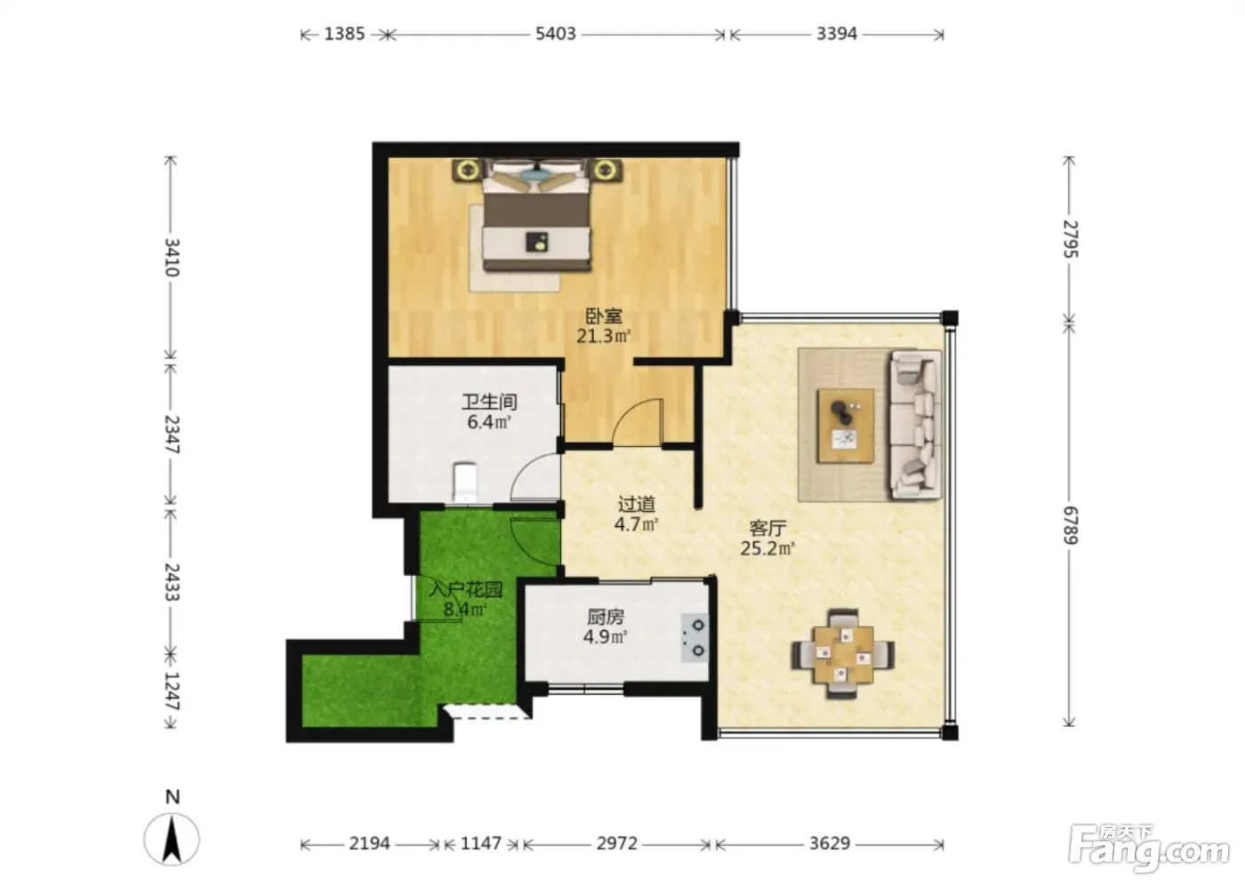 户型齐全,主打明卫,明厨,客厅朝南,全明格局一居