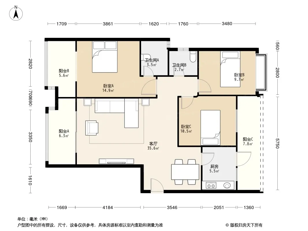 户型齐全,主打明卫,双阳台,主卧朝南三居