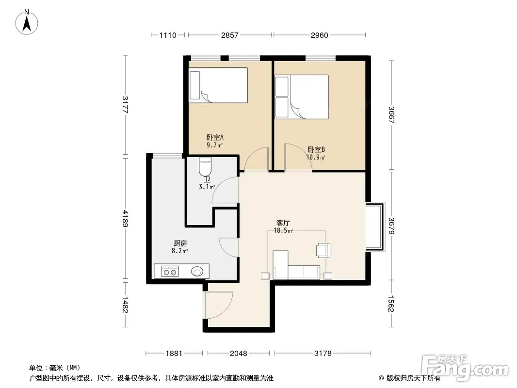 户型齐全,主打明厨,客厅朝南二居