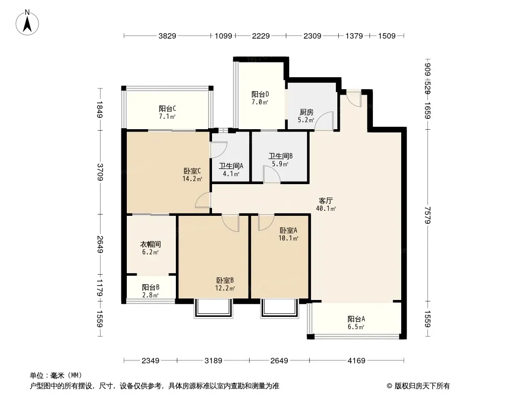 户型齐全,主打户型方正,明卫,独立衣帽间,双卧朝南三居