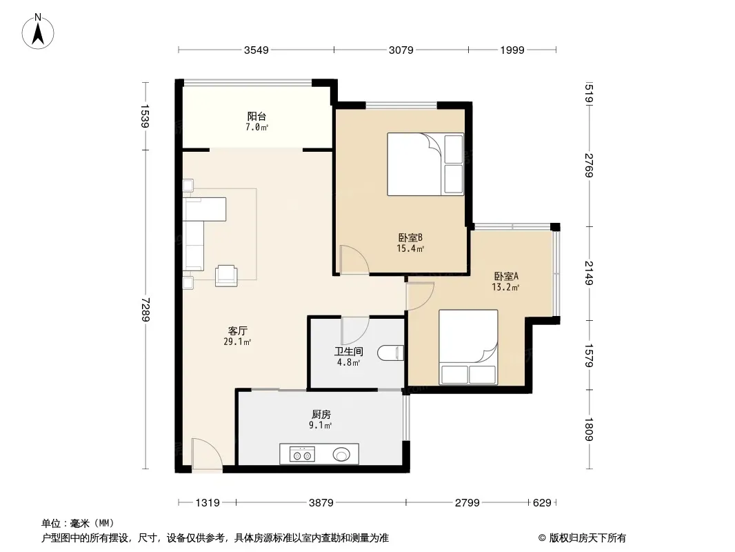 花样年花样城 2室1厅 北