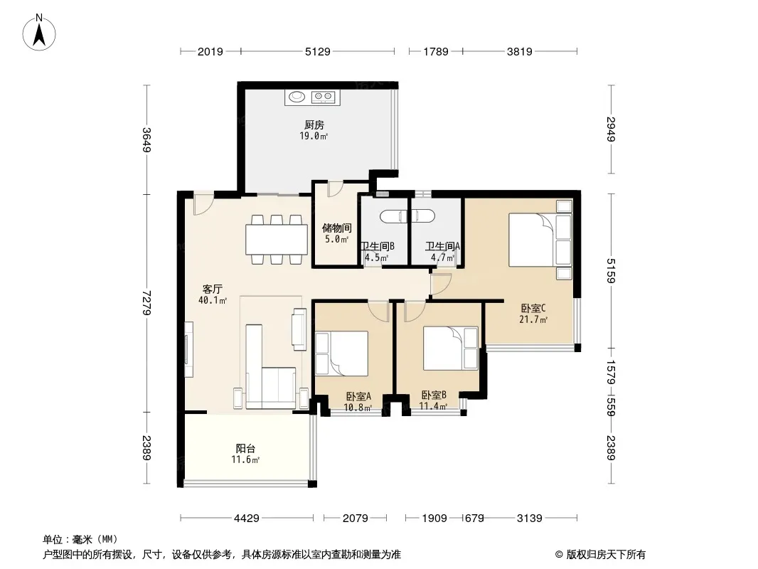 时代晶科名苑 3室1厅 南