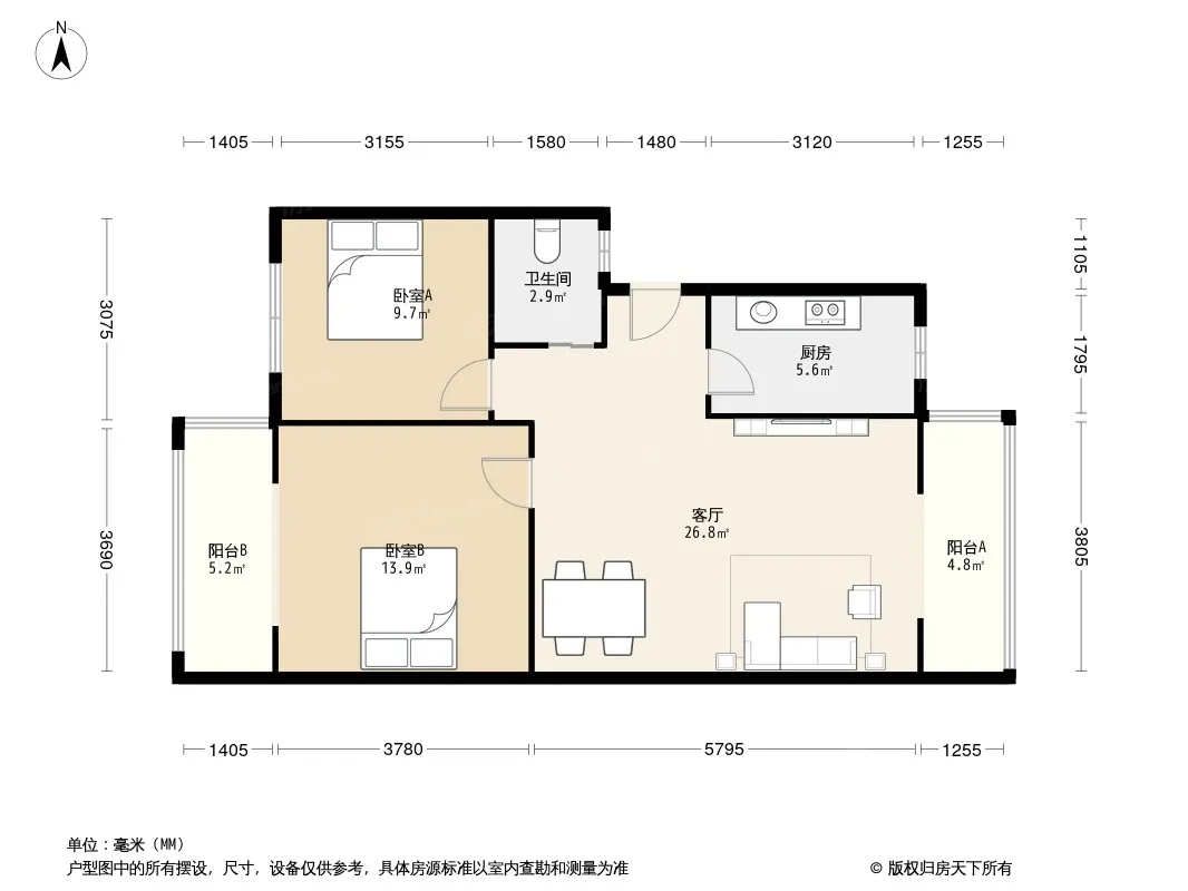 户型齐全,主打户型方正,明厨,客厅朝南二居
