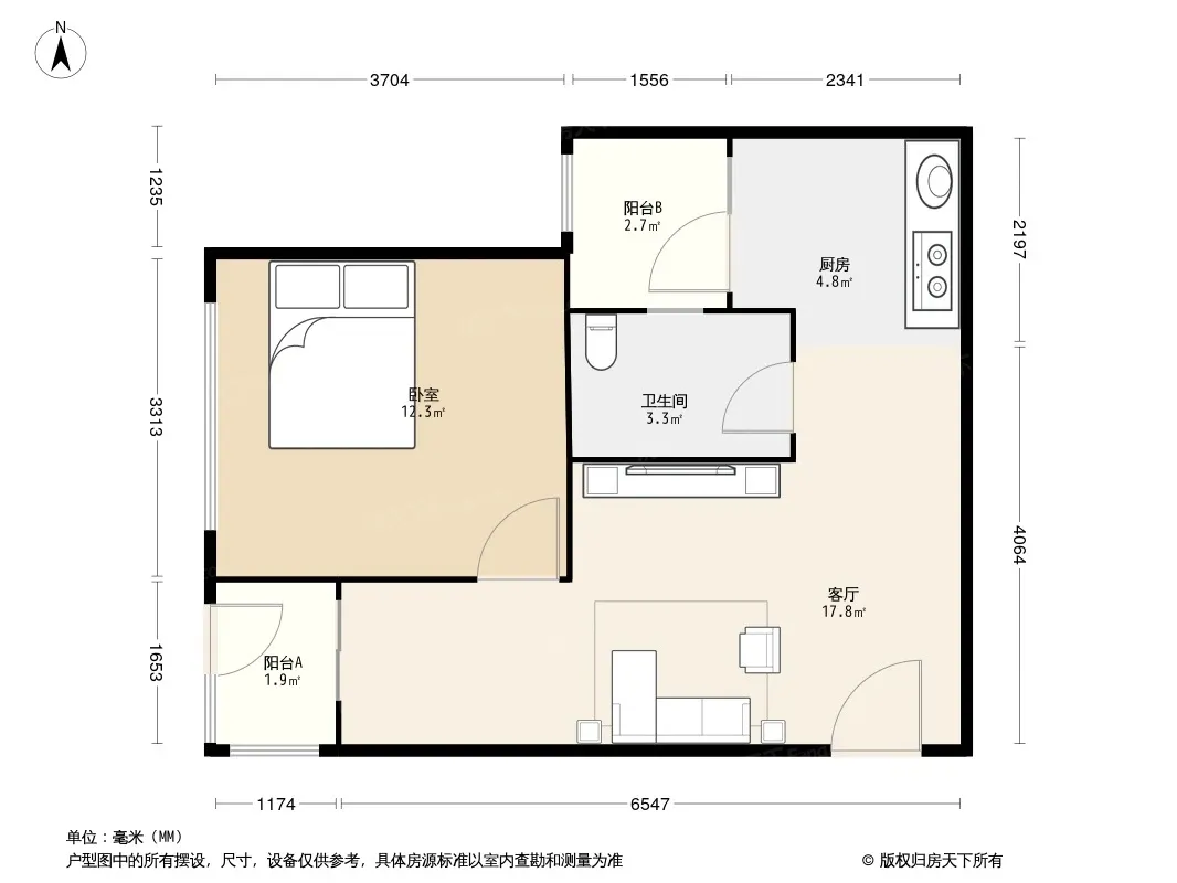 户型齐全,主打客厅朝南二居