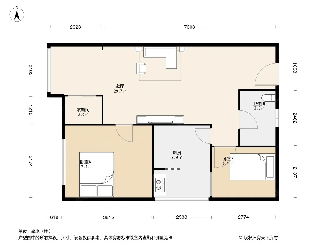户型齐全,主打客厅朝南二居