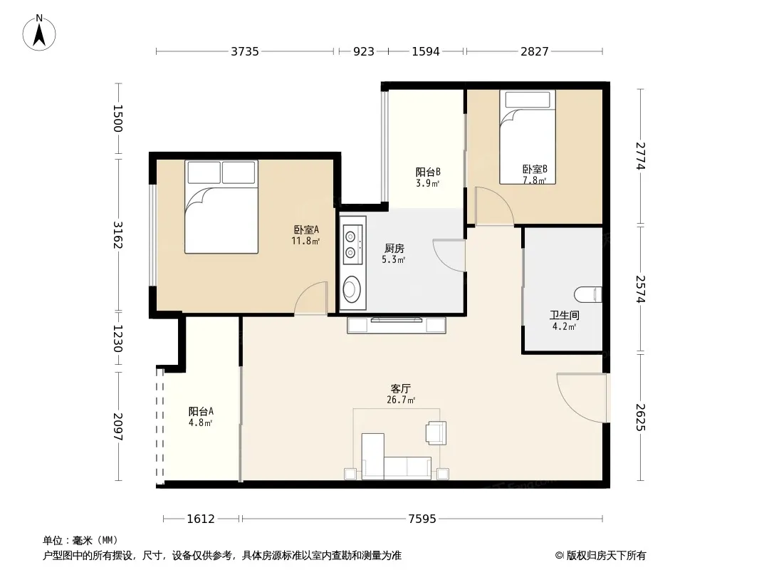 户型齐全,主打客厅朝南二居