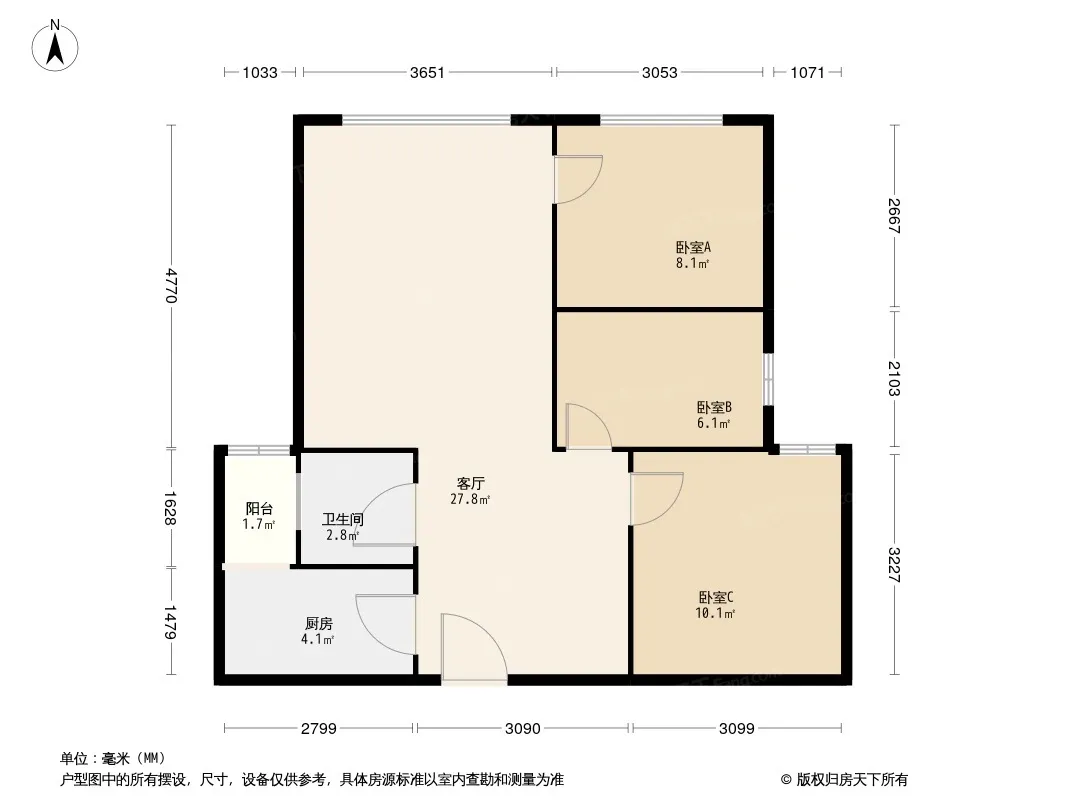 户型齐全,主打明厨,客厅朝南,主卧朝南三居