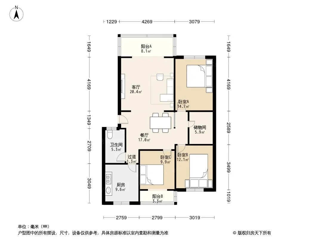 户型齐全,主打户型方正,明厨,双卧朝南三居