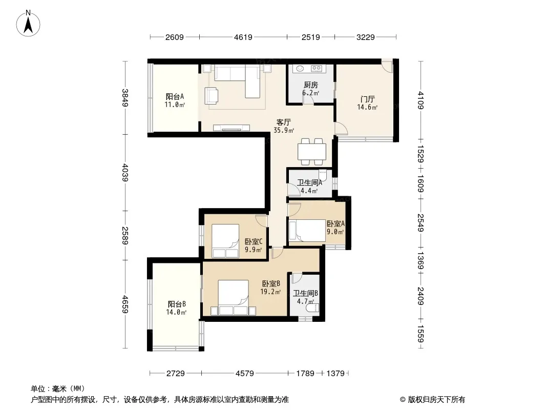 户型齐全,主打户型方正,独立衣帽间,明厨,明卫,客厅朝南三居