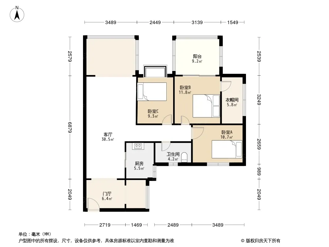 户型齐全,主打户型方正,独立衣帽间,明厨,明卫,客厅朝南三居