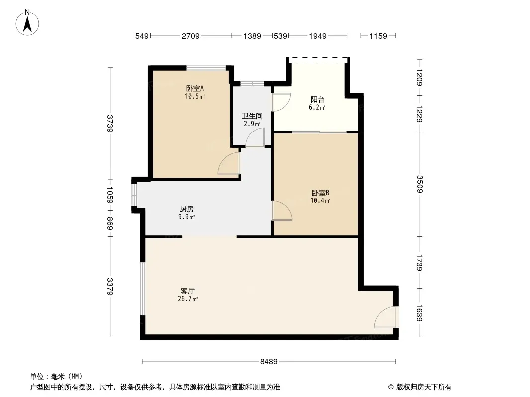 户型齐全,主打户型方正,明厨,明卫,客厅朝南二居