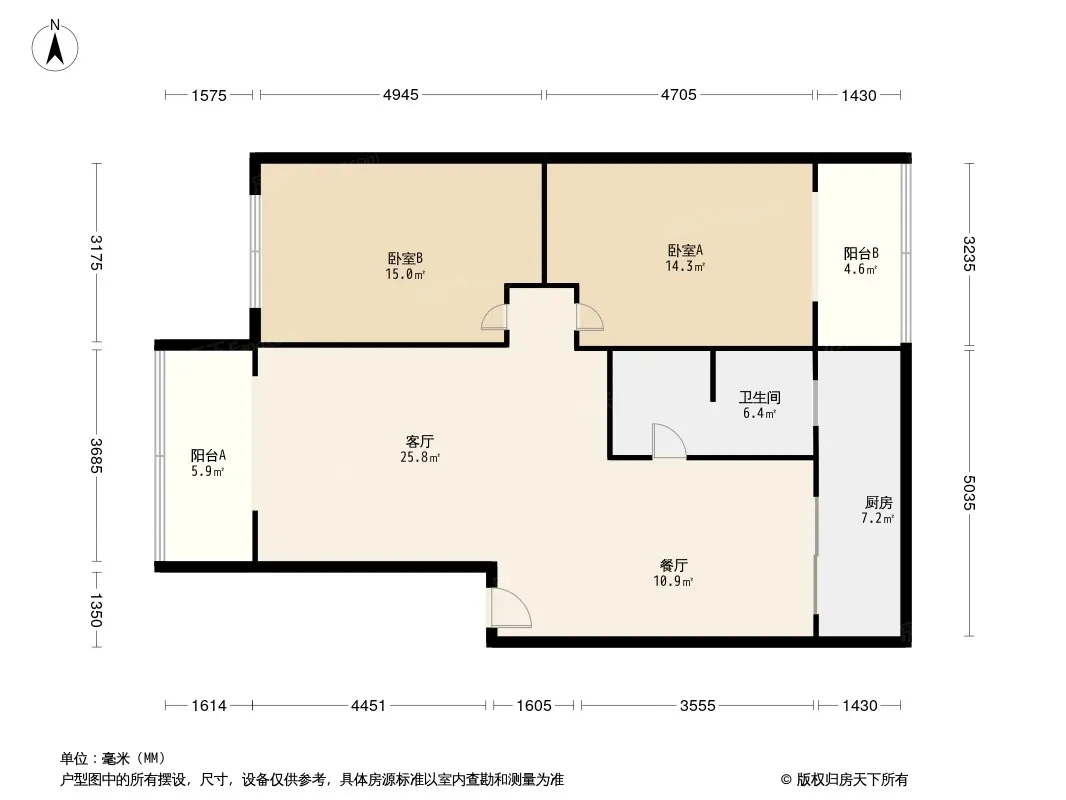 户型齐全,主打明厨,客厅朝南,双卧朝南三居