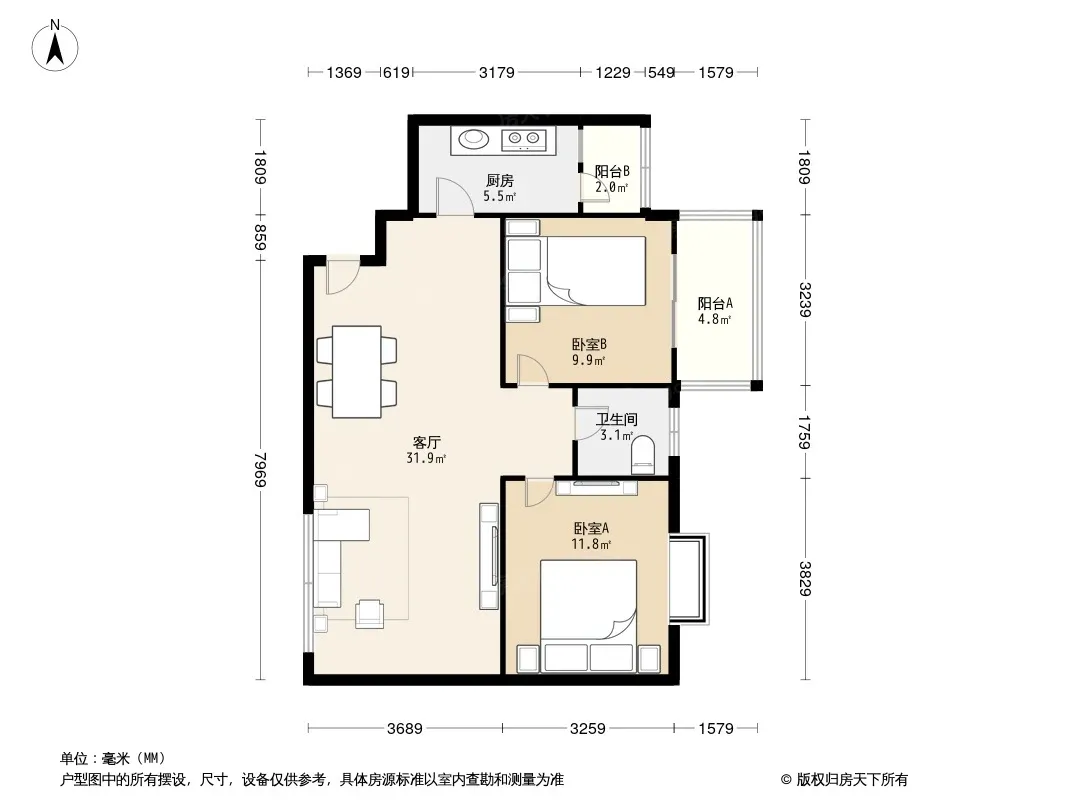 户型齐全,主打户型方正,明厨,明卫,客厅朝南,全明格局二居
