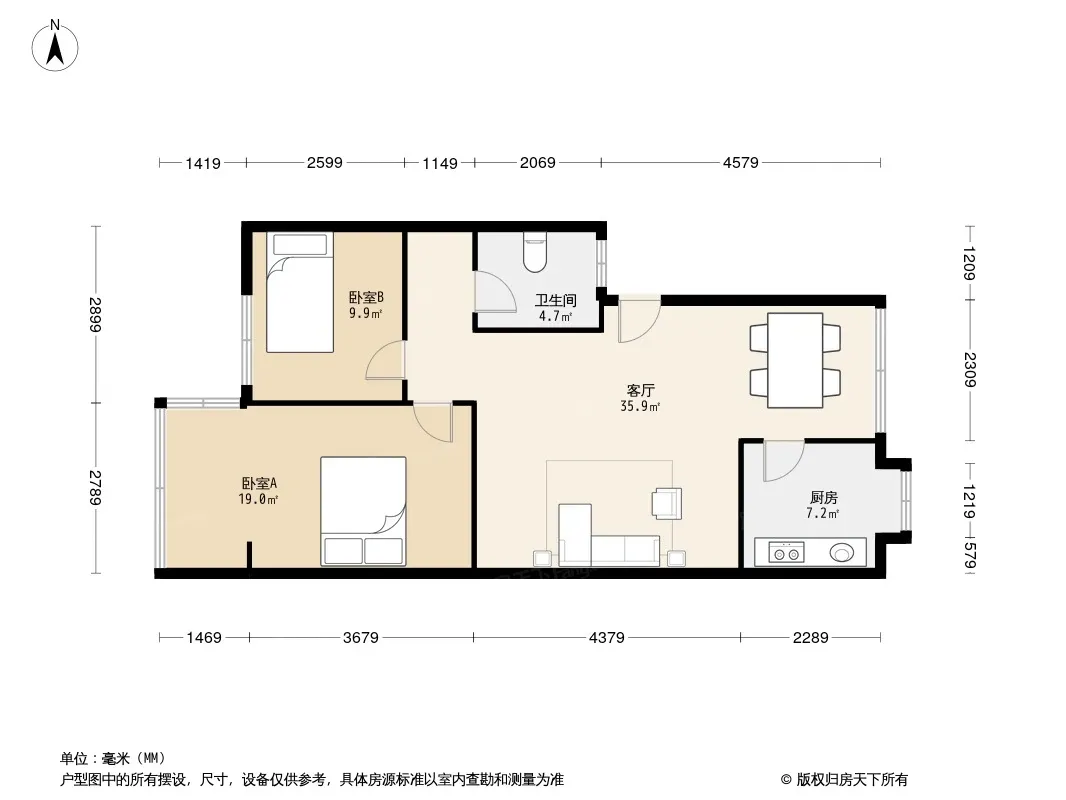 户型齐全,主打明厨,客厅朝南二居