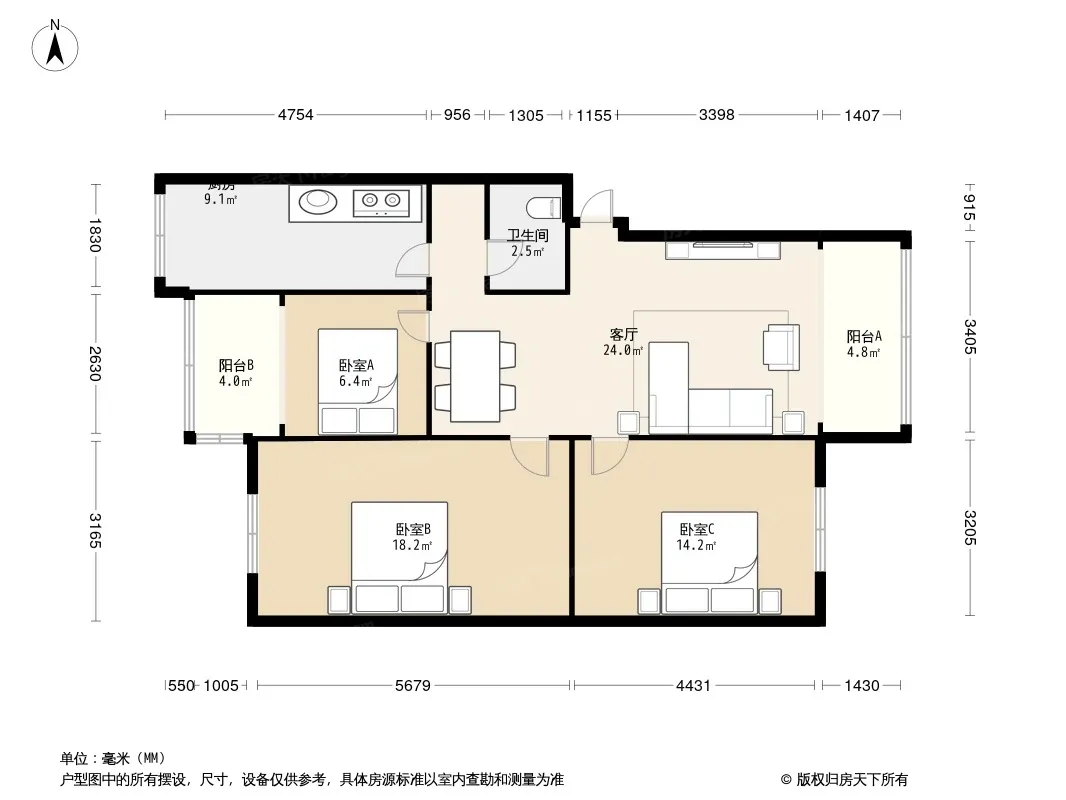 户型齐全,主打户型方正,明厨,明卫,客厅朝南,全明格局三居