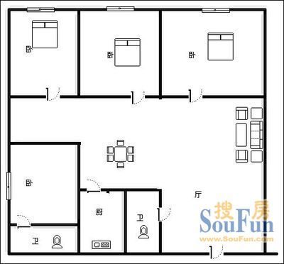 嘉恒商寓 3室1厅 东北