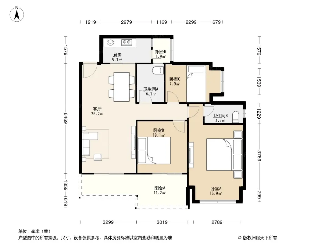 户型齐全,主打户型方正,明卫,双阳台,双卧朝南,主卧朝南三居