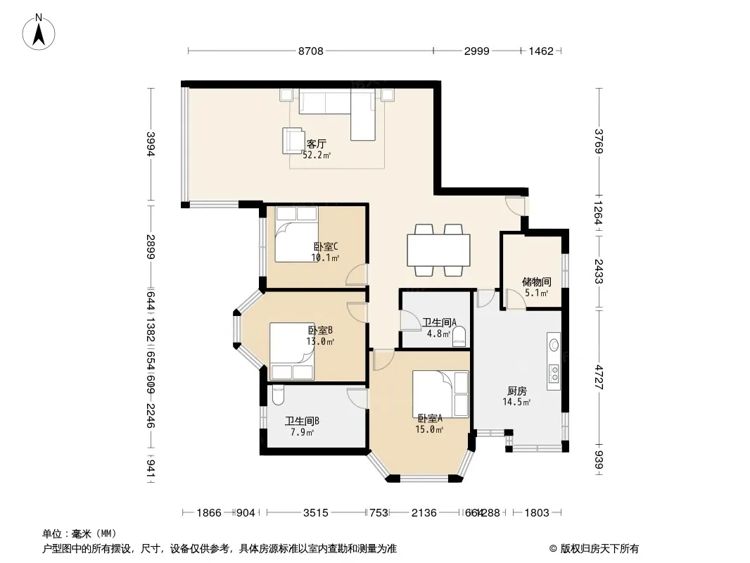 户型齐全,主打户型方正,明卫,独立衣帽间,客厅朝南三居