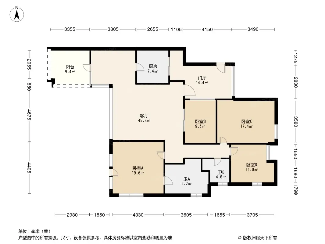 户型齐全,主打户型方正,明卫四居