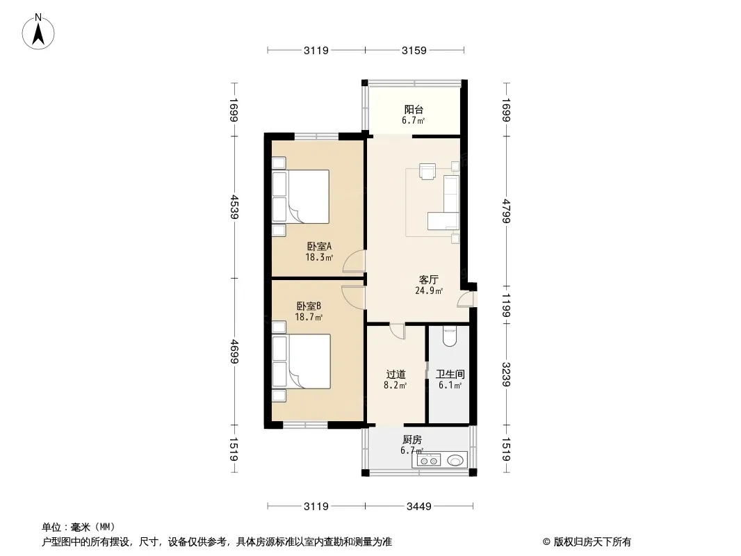 户型齐全,主打明厨,主卧朝南二居