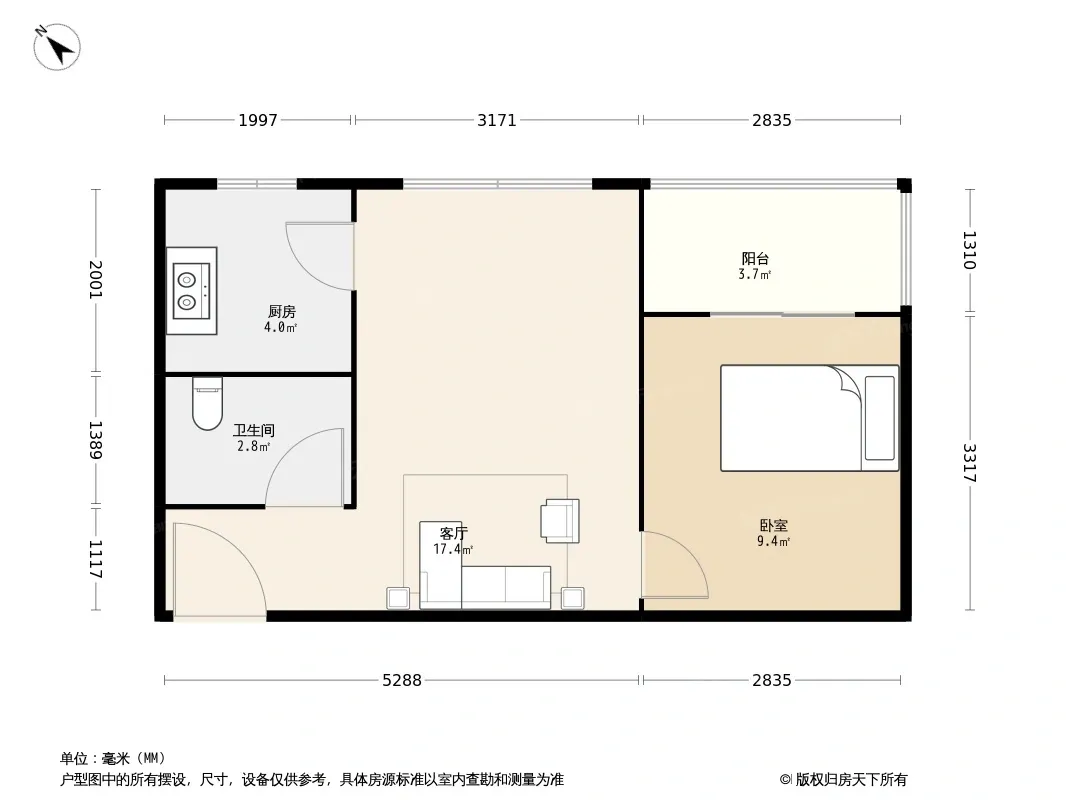 户型齐全,主打明厨,客厅朝南一居