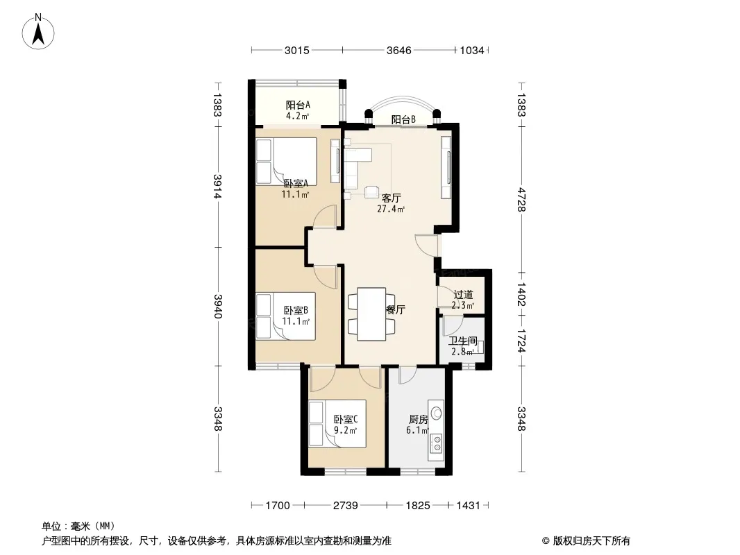 金竹苑C区 3室2厅 西南