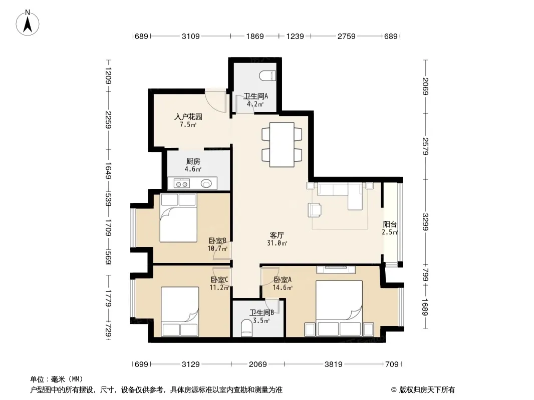 *获取完整户型报告,同时会有免费语音讲解服务