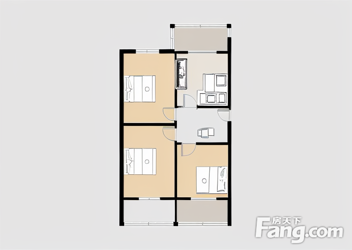 户型齐全,主打明厨,客厅朝南二居