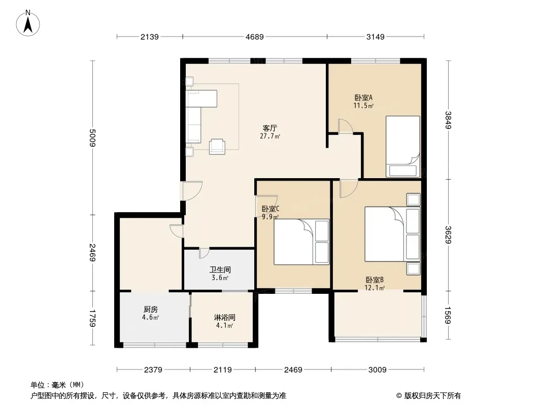 抚琴西路238号3室2厅南北
