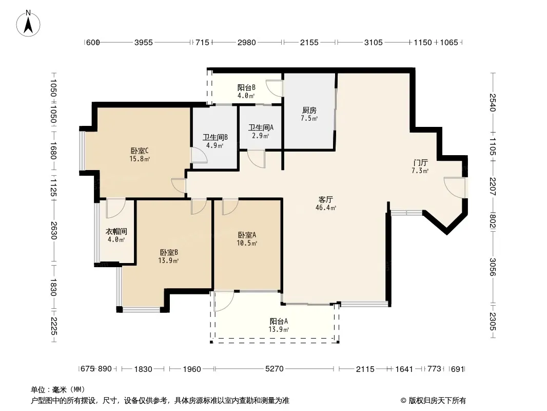 户型齐全,主打独立衣帽间,明卫,客厅朝南三居