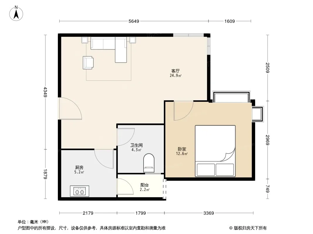户型齐全,主打户型方正,明卫,客厅朝南,双阳台,主卧朝南一居