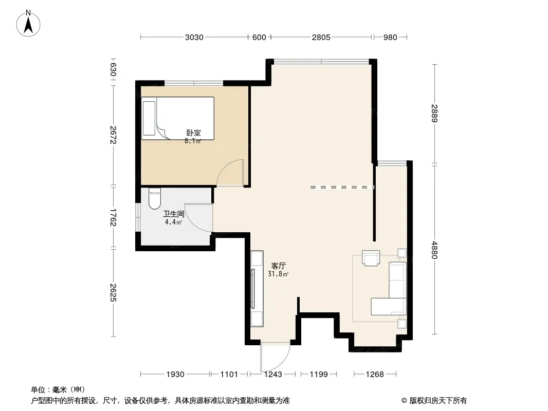 户型齐全,主打户型方正,明卫,客厅朝南,双阳台,主卧朝南一居