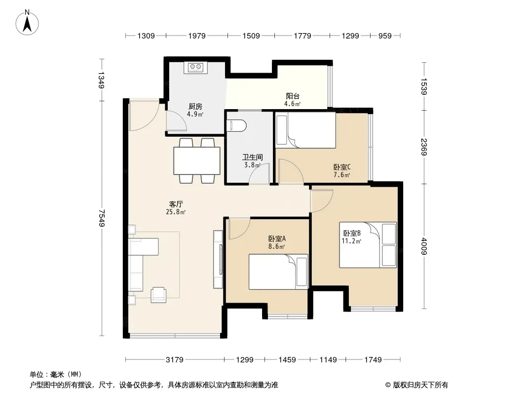 户型齐全,主打户型方正三居